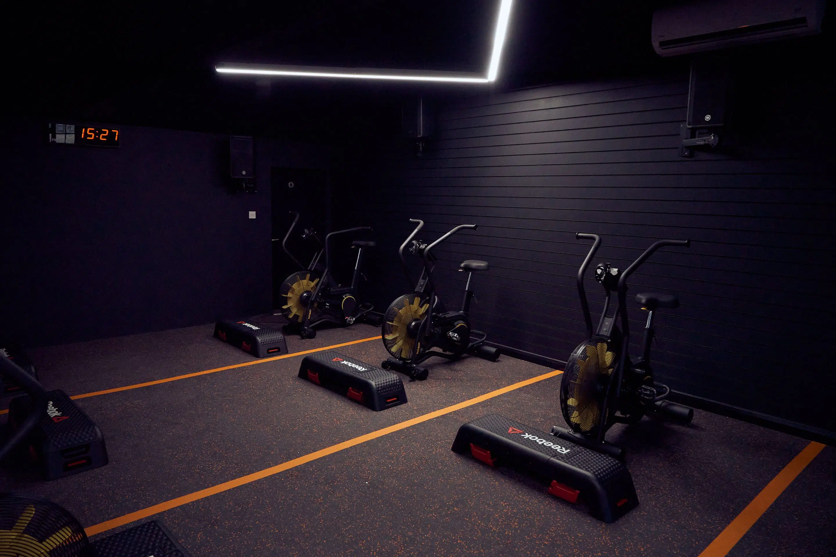 The aim of this project was to convert an old activity hall into a boutique fitness studio, creating the same buzz and community focused attitude as key city hotspots. The brief was to create two distinct training spaces, one based around HIIT circuits and marked training areas and the other a strength and conditioning lifting area with multiple stations.