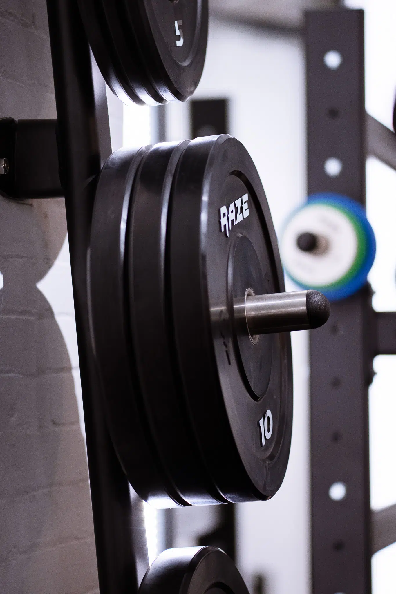 RAZE Strength equipment – including PU dumbbells, Shadow series bumper plates.
